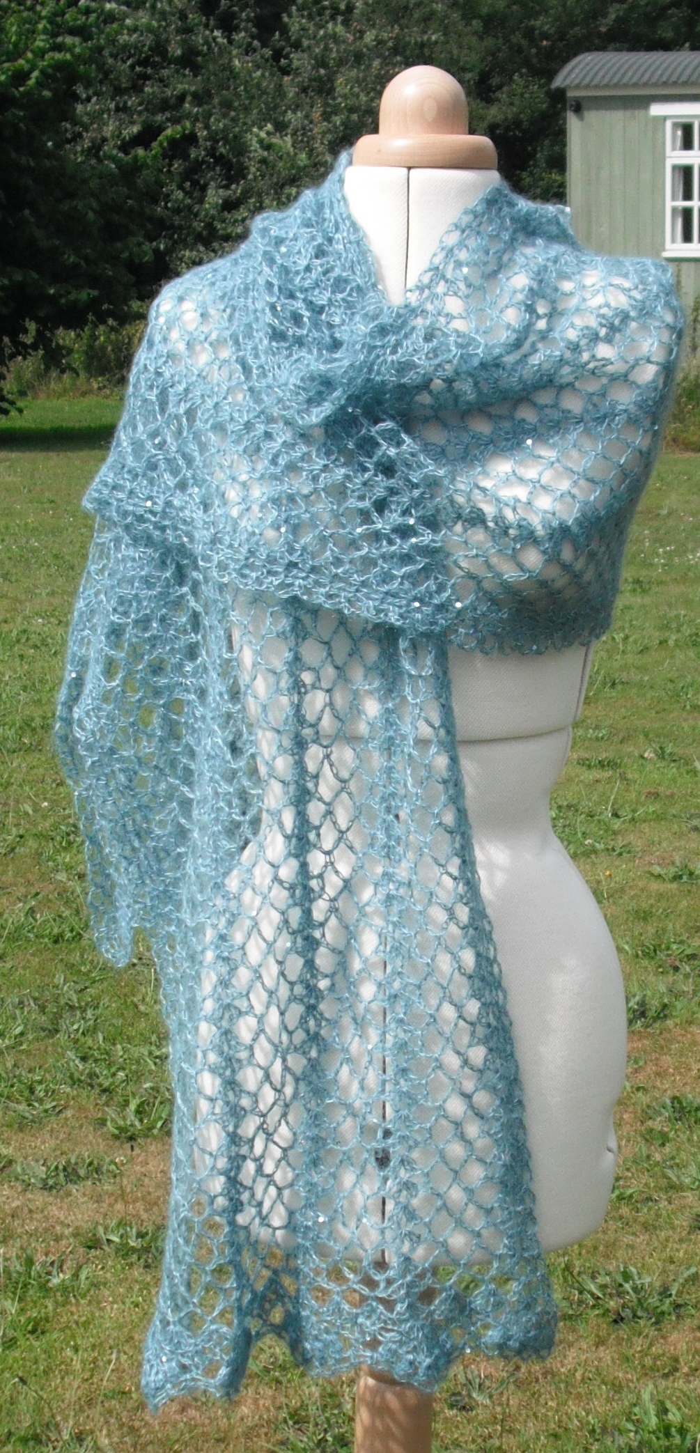 There are some yarns I just love so much….kidsilk is one.   So when I spotted the new Rowan Kidsilk Haze Glamour yarn in John Lewis I just had to buy some.   It has tiny sparkley sequins threaded on the yarn – gorgeous!   This is what I made with it: