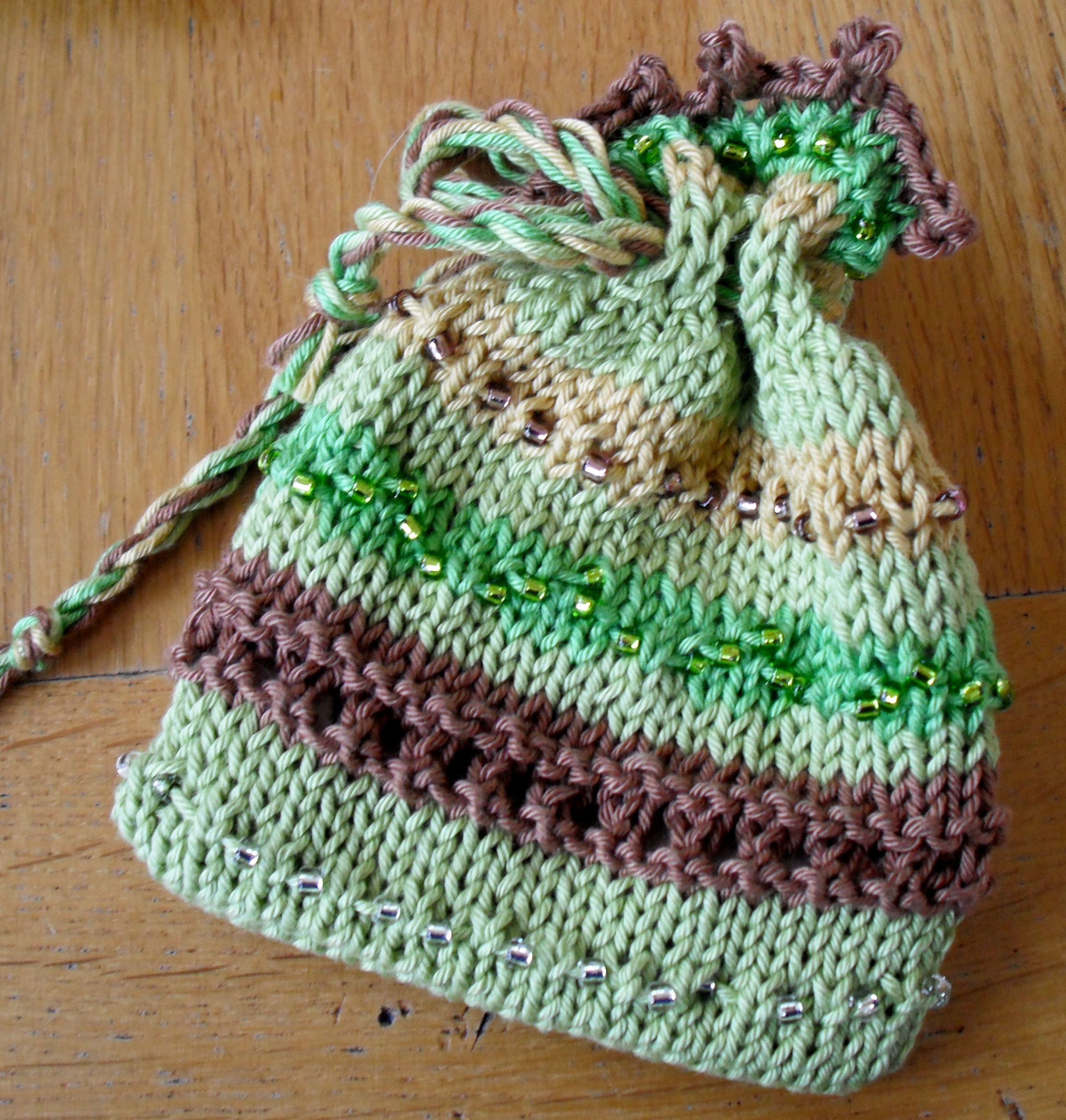 So a spare afternoon yielded this: Beaded knitted pouch