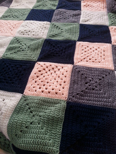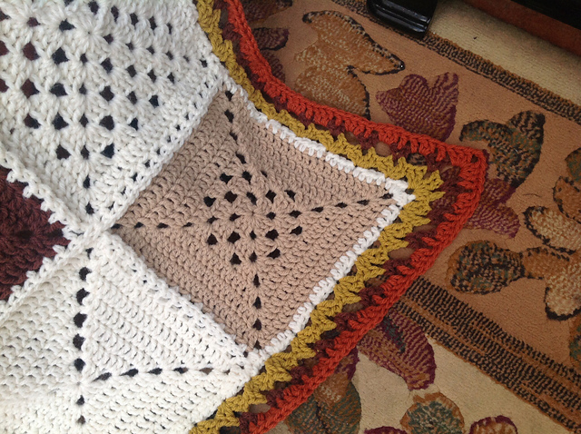 And this is Nona’s blanket. I love the bright zingy colours, and I was astonished to discover this was her first blanket!