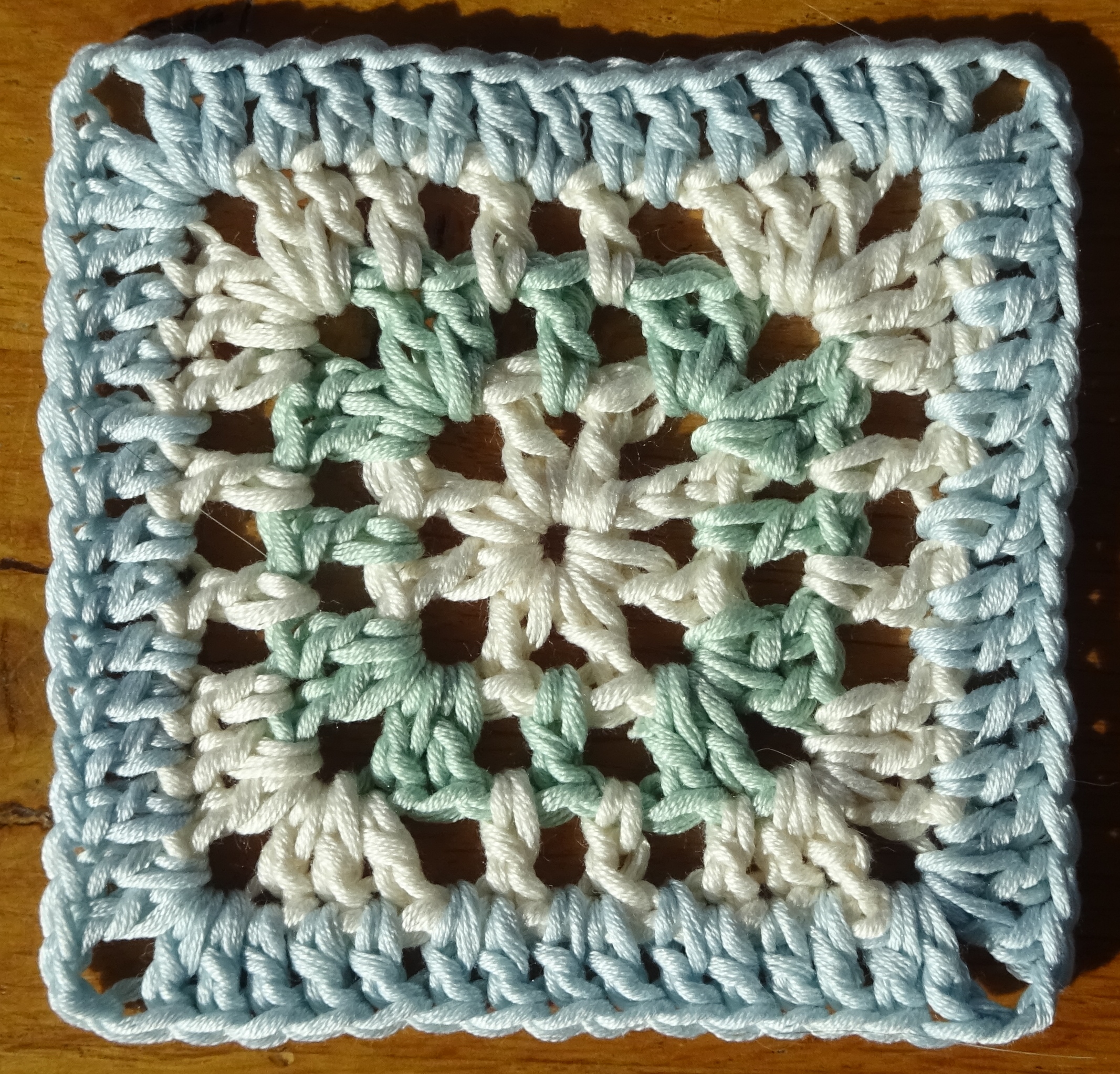 I made my squares from one colour throughout, but if you want to change colours then simply join your new colour at the point you do a ss on each new round.