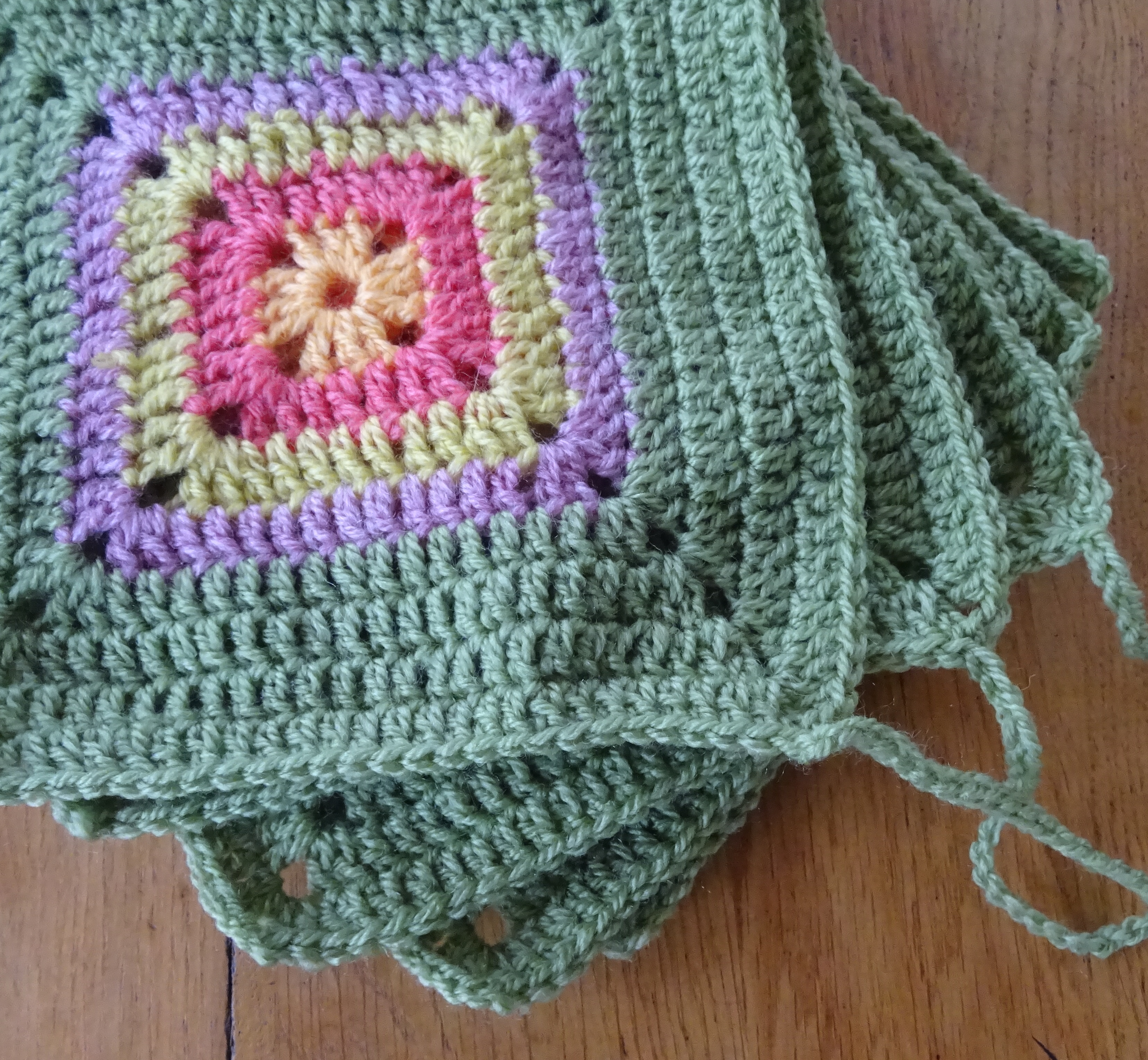 You will notice that I have a chain running off the corner of each motif. This is my way of ensuring I have enough yarn on each motif to slip stitch them together afterwards. You see a chain st uses the same amount of yarn as a slip stitch, so if you work out how many slip stitches you will need all you have to do is a chain the same number (plus a bit spare) and you should have enough yarn to join the motifs at a later stage. Just don’t tie off the chain, leave it loose so that you can pull it back quickly. For me this meant a chain of 70 sts, because each motif has 33 sts down each side and most of the motifs will be joined along 2 sides – so 2 times 33 plus a bit equals 70. I guess this is Tip number 6!