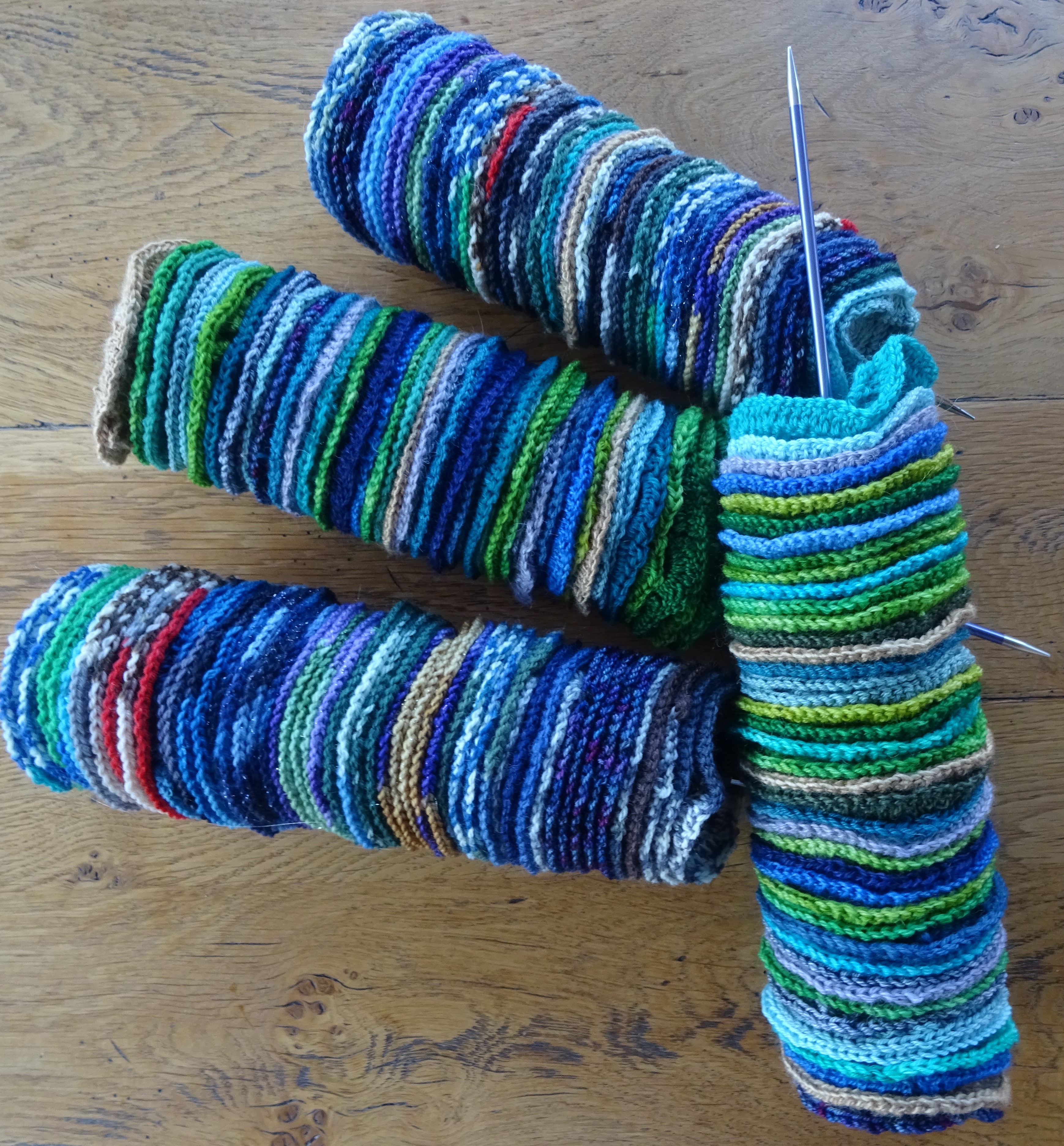 Make all the circle motifs first, then lay them out in your blanket shape, moving them around until you have a colour scheme you like. Then photograph them to remind you of your layout. You may also wish to thread them onto a knitting needle in the reverse order you will join them. Either one long circular needle or one needle per row of blanket.