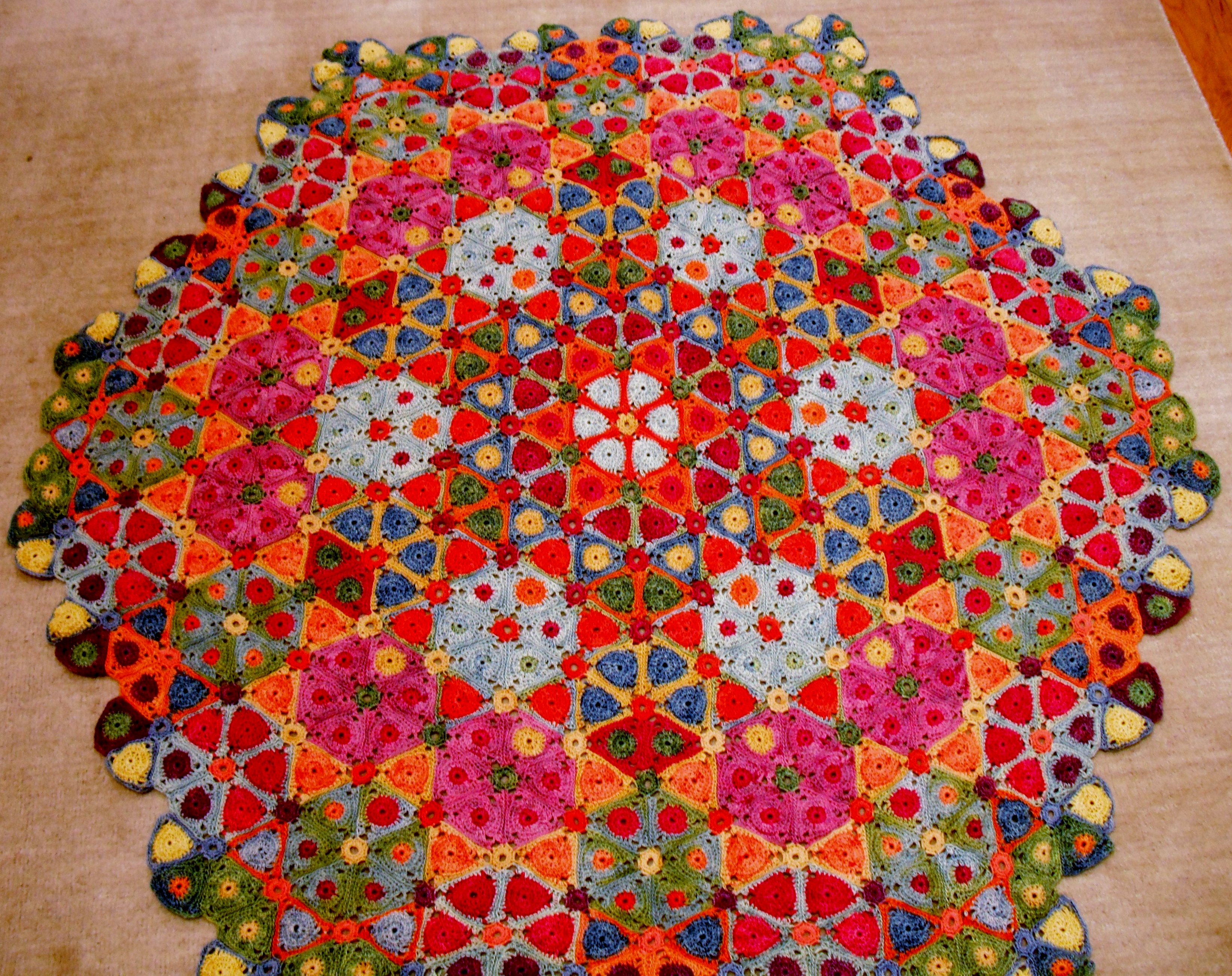 I am delighted and surprised that I have managed to keep up with my personal challenge. Only one month to go ……………but, although the December design is in my head, it hasn’t quite gone to plan. The design hasn’t worked with any yarns I have chosen yet – other than the acrylic I swatched with. Yes, readers I do sometimes swatch with acrylic yarn! But fear not, I do not plan to make December in acrylic……….(ETA I have nothing against acrylic yarn; these days it is excellent quality and comes in an amazing range of colours, but I do have a preference for natural fibres!) Yesterday I settled on the yarn and it is silk again, I have a lot of small quantities and will be using 20 colours in this. I will have to be quick to make it, write the pattern and find a couple of people who will test it for me before December…….wish me luck!